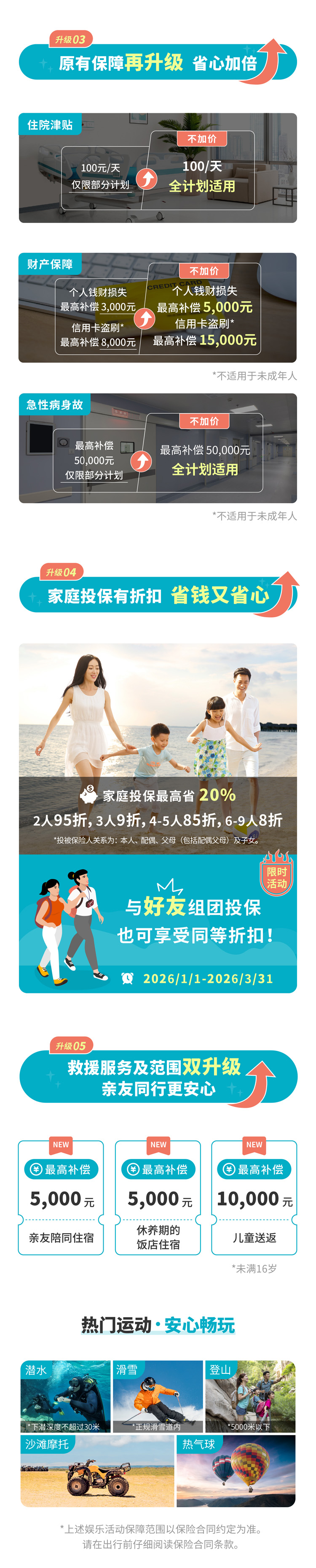 | 医疗运送与送返 | 500,000 | 750,000 | 1,000,000 | 1,000,000 |